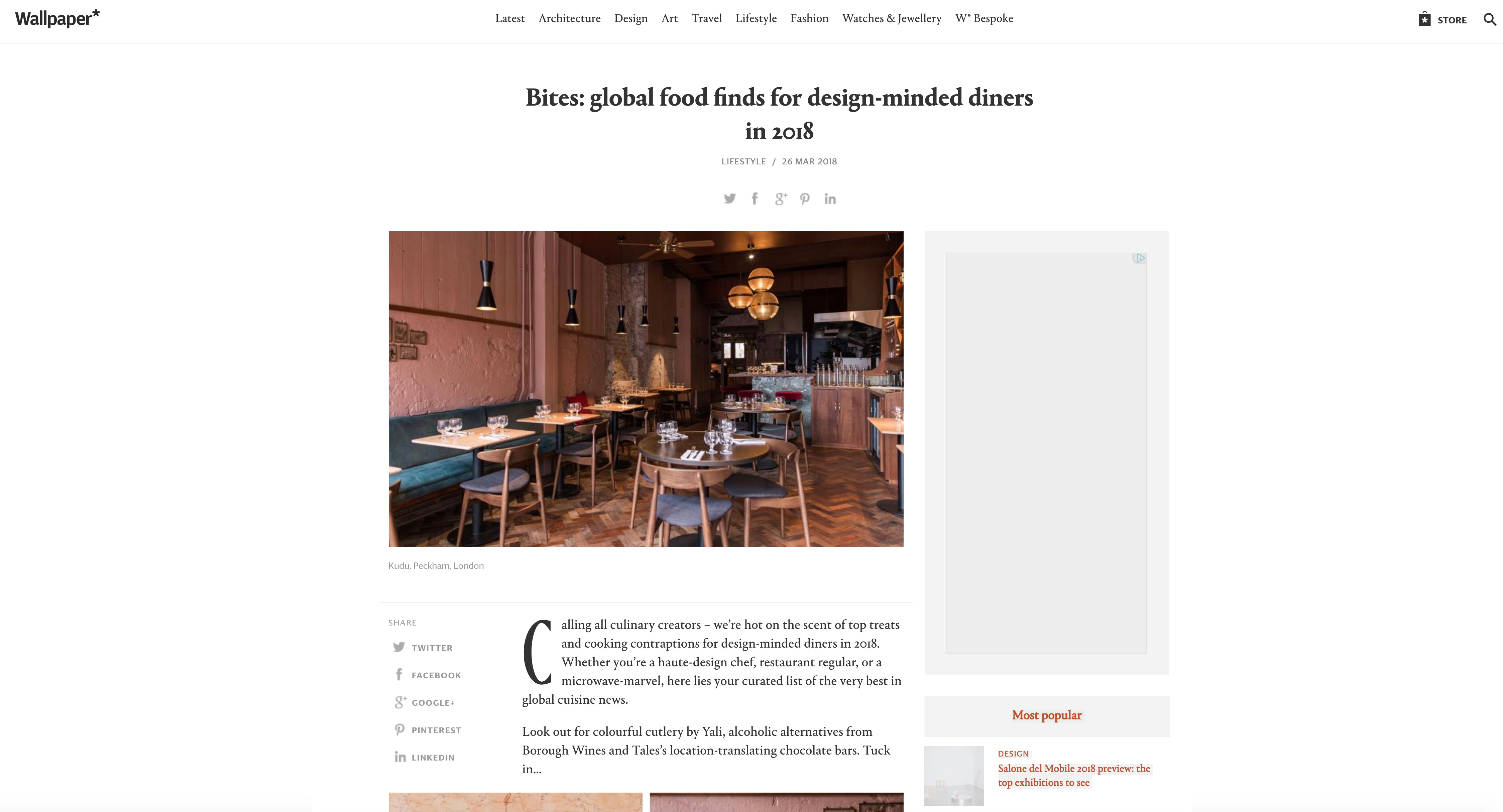 Posted by Frida Andersson onWe are thrilled to be featured in this great article from Wallpaper*! Wallpaper* is a British magazine championing the best in architecture, interiors, fashion, art and contemporary lifestyle. "Calling all culinary creators – we’re hot on the scent of top treats and cooking contraptions for design-minded diners in 2018. Whether you’re a haute-design chef, restaurant...